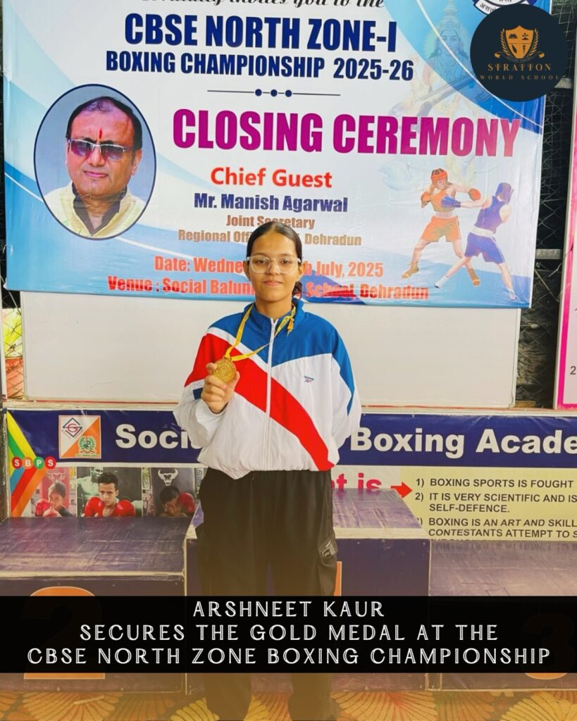 Displaying remarkable focus and dedication, Arshneet secured a Gold Medal in the CBSE North Zone Boxing Championship 2025-26 held in Dehradun![]()